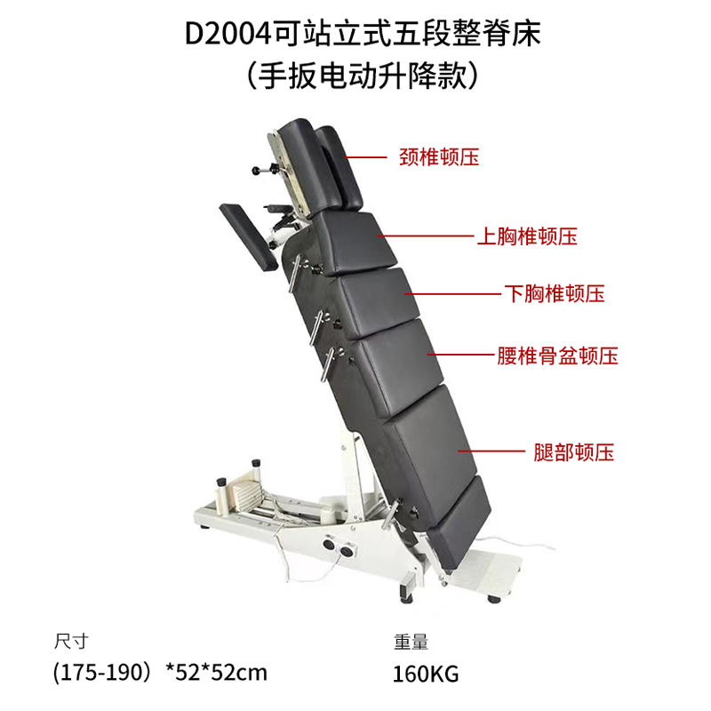 D2004可站立式五段整脊床(手扳電動升降款)